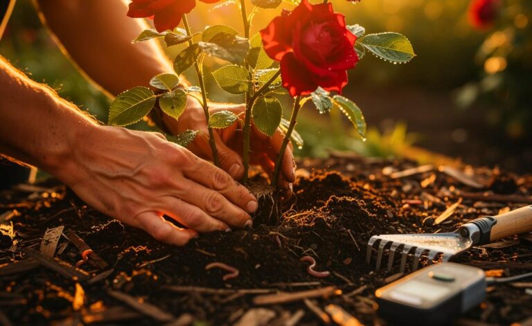 Jetzt Rosen kräftiger wachsen lassen: Bodenpflege mit Kompost & Mulch, pH- und Nährstoff-Management (Bodentest, Hornspäne), Drainage-Tipps & Saisonplan.